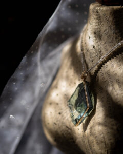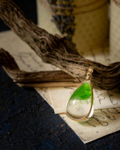 このペンダントに使ったグリーンは、表面にくぼみがあります。